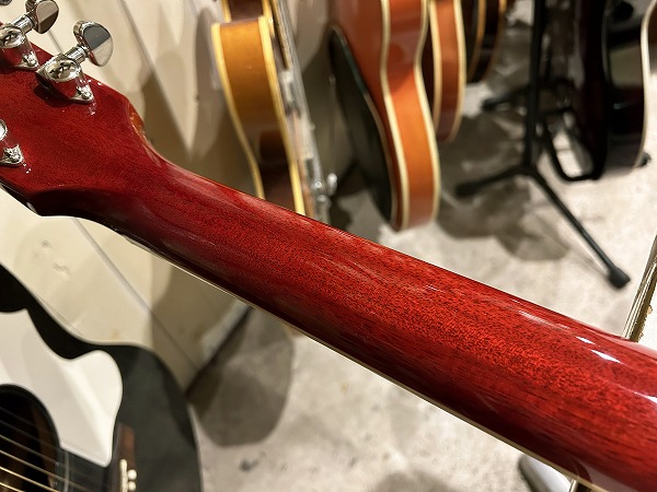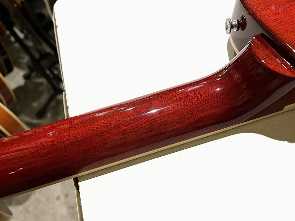サウンドも極上です。ソリッドマホガニーバックならではのタイトで引き締まったサウンド、ハリと芯のあるトーンながらスイートさも持ち、ピックアップとのマッチングと相まって、クリアーかつ芯のあるレス・ポール・スタンダードサウンドを奏でます。サウンド、ルックス共に長く使い育てがいのあるポテンシャルを持った素晴らしい1本です。