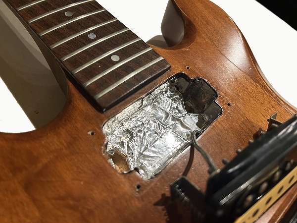 / オーバーホール修理済で、経年劣化による断線巻き直し修理を行なっており、オリジナル同様エナメルワイヤー、巻き数にて本家サウンドを元気いっぱいに取り戻しています。アウトプットジャックは経年劣化故障の為、新しいものに交換しております。ブリッジは交換されておりチューン・オー・マチック+ストップテイルピース、ペグはGibson