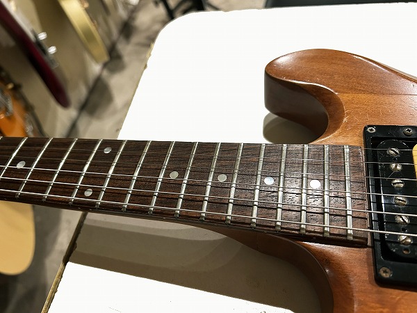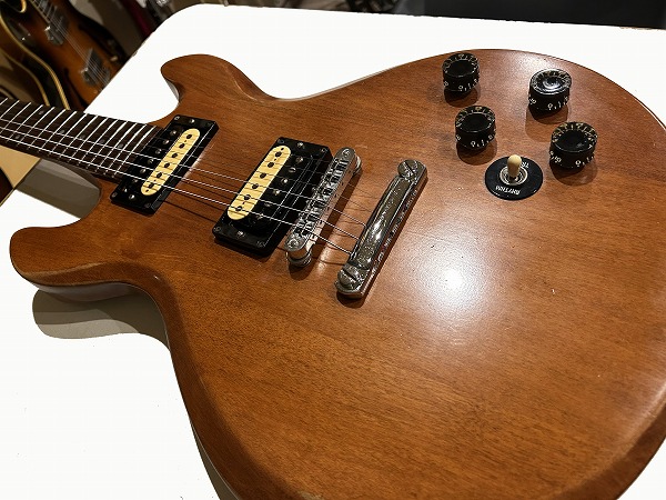 サウンドも素晴らしい1本です。かなり個性的存在のモデルですが、サウンドの方はストレートなグッドサウンドで、メイプル主体ならではのハリと芯のあるサウンド、低音もしっかりとした骨太ながらこもらないサウンド、セットネック仕様のサステインと鳴り良いサウンドに、ローズウッドの瑞々しいタイトさのあるトーンながら、メイプル主体とのマッチングで粘り気もあるトーンが魅力的です。1980年製