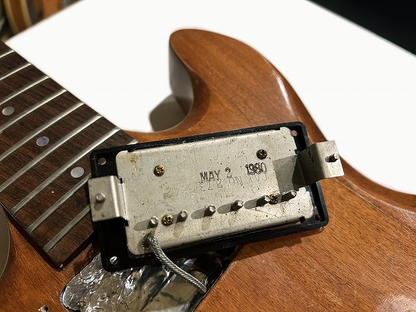 Humbackerとなっており、現在オリジナル搭載のものかどうか確実には不明ですが、背面に刻印ナンバードと「MAY 1 1980」のスタンプあり、オリジナルと同年式のGibson