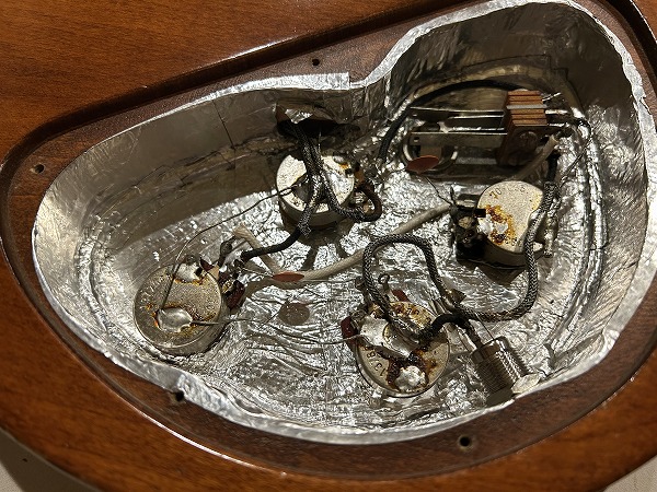 1980年製刻印ナンバードのPAFを搭載しています。コントロールは2Vol 2Tone 1Toggle SWで、ポットもオリジナルのままです。ピックアップはOH