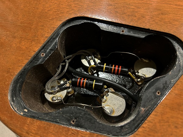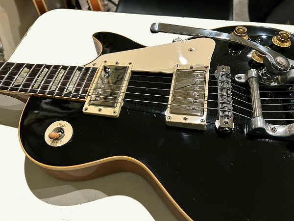 ピックアップはオリジナルのままで、Gibson Burst Bucker 1をフロントにBurst Bucker 2をリアに搭載。PAF系サウンドを忠実に再現しつつ、フロントは非常にクリアーでスッキリとした歯切れ良く、かつとてもスイートなトーン、リアはアタック感とブリリアント感がありながら、こちらもスイートかつクリアーで、かつドライな枯れ感、いなたさを持っており、どちらもほど良いパワー感でヴィンテージライクな雰囲気を持っています。本体とのマッチングにより、非常にタイトかつスイート、とても鳴り良くファットなサウンドながら、クリアーで艶感のあるブリリアントさ、いなたさとまとまりを持った非常にグッドサウンドなレス・ポール・スタンダードサウンドとなっています。クールなカスタムのこの仕様も魅力ですが、さすが当時のカスタムショップのとても良いサウンドの1本です。
