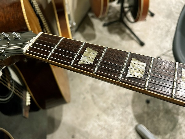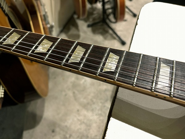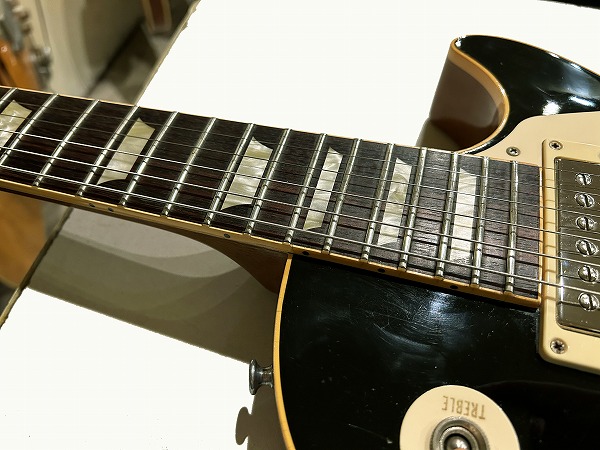 プレイコンディションは良好です。ネックは反りも無く真っ直ぐで良好な状態です。ロッドはまだ若干の余裕がありますので今後の微調整も可能です。フレットは相応に減りが見られ、軽度のへこみも見られますが、まだ7分程度は残っており、ローアクションセッティング可能で出音も良好です。山は元々低いタイプです。丁寧に磨きも入れており、光沢も大分取り戻しています指板も相応に小傷、使用感ありますが、大きな減りやダメージは無く、こちらも丁寧にクリーニングの上、コンディショニングも行っており綺麗なコンディションになっています。
