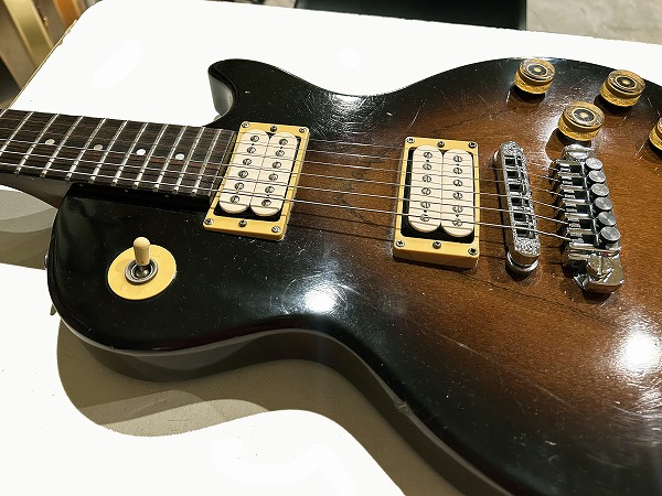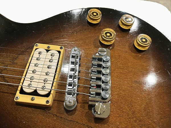 2Tone、1Toggle SW(ピックアップセレクター)で、フロント - センター - リアで切り替わります。外観的にも相応に傷、使用感、経年感があり、打痕や擦り傷、小さな塗装剥がれ等、全体的に相応に多々あるプレイヤーズコンディションです。全体的に丁寧にクリーニング、磨きは入れており、綺麗なコンディションにはなっております。相応のプレイヤーズコンディションの1本で、ルックスの雰囲気の良さはあります。ケースは近年ものですがGibson