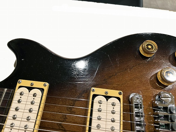 外観的にも相応に傷、使用感、経年感があり、打痕や擦り傷、若干の小さな塗装剥がれ等、全体的に相応に多々あるプレイヤーズコンディションです。全体的に丁寧にクリーニング、磨きは入れており、綺麗なコンディションにはなっております。相応のプレイヤーズコンディションの1本で、ルックスの雰囲気の良さはあります。ケースは近年ものですがGibson