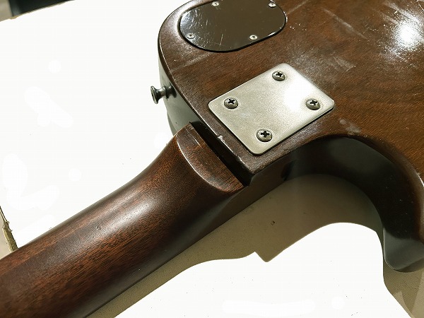 元となっているのは1955年製 Les Paul Specialの復刻版リイシューモデルである Gibson Les Paul 55 と思われ、そのさらに簡略版としてボルトオン仕様で発売された、Gibsonの歴史上でもかなり特異なキャラクターのモデルです。ヘッド裏刻印シリアル「7***9***」の1979年製、モデル名のGKはGibson