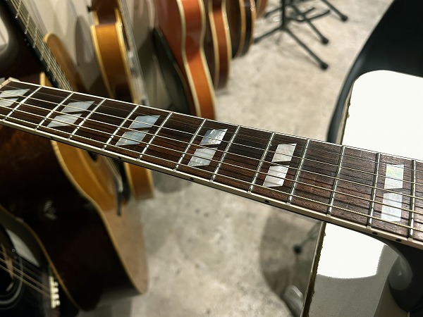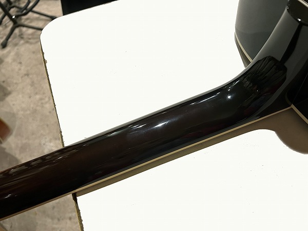 コンディションも良好です。ネックは真っ直ぐで良好な状態で、トップのふくらみやネック起きもありません。フレットも8分程度は十分に残っており、大きな減りやへこみ、弦溝も無く、丁寧に磨きも入れ光沢のある綺麗なコンディションになっています。指板も軽度の減り、小傷、使用感はありますが大きな減りやダメージは無く、指板も丁寧にクリーニング・コンディショニングを行っており、綺麗なコンディションになっています。ブリッジの高さも十分に残っています。低く削られてはおらず、オリジナルに近い設定値で、現在弦高は12フレット上1弦約2mm、6弦約2.5mmです。弾きやすく、ビビリやつまりも無く、非常に良好な出音となっています。ペグ動作も問題無く、緩み等もありません。プレイコンディションは非常に良好で問題ありません。メンテナンス、セッティング済の良好プレイコンディションで、すぐにそのままお使いいただけます。