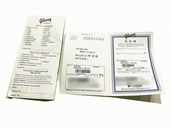 コンディションも良好です。ネックは真っ直ぐで良好な状態で、トップのふくらみやネック起きもありません。フレットも8分程度は十分に残っており、大きな減りやへこみ、弦溝も無く、丁寧に磨きも入れ光沢のある綺麗なコンディションになっています。指板も軽度の減り、小傷、使用感はありますが大きな減りやダメージは無く、指板も丁寧にクリーニング・コンディショニングを行っており、綺麗なコンディションになっています。ブリッジの高さも十分に残っています。低く削られてはおらず、オリジナルに近い設定値で、現在弦高は12フレット上1弦約2mm、6弦約2.5mmです。外観的にもまだまだ美品のグッドコンディションです。軽度の擦り傷、小傷など使用感、経年感はあるものの、大きな打痕、塗装剥がれ、クラックなどのダメージはありません。丁寧にクリーニング、磨きも入れており塗装は艶もある綺麗な美品コンディションとなっています。ケースは純正ハードケースが付属します。その他当時付属書類も付属いたします。コンディションに関しては下記に詳しく記載しておりますので、そちらもご参照下さいませ。