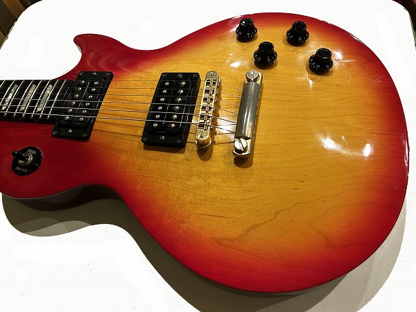 出物も少なくなってきた、やや珍しい仕様のGibson Les Paul Studio Lite、Cherry Burst 1993年製の1本が入荷しました。レス・ポールの基本構造とサウンドの魅力はそのままに、特殊な構造で軽量化が図られ、シンプルなルックスにゴールドハードウェア、エボニー指板という特徴的な仕様も一風変わった魅力の独自性を持ったモデルです。