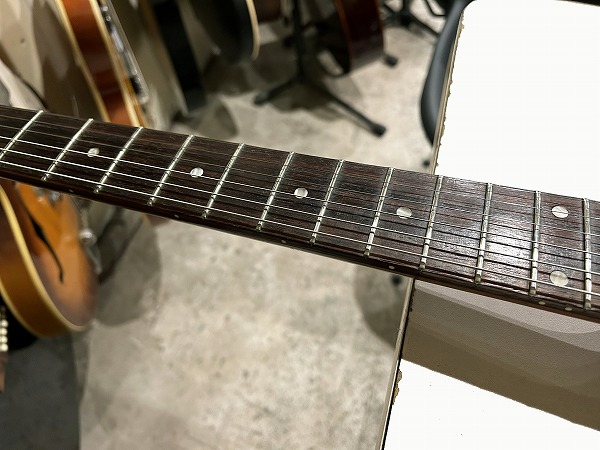 コンディションは良好です。メンテナンス、セットアップ済で、弦高ローアクション、弾きやすく出音良好の、グッドプレイコンディションです。外観的には相応に小傷、使用感、経年感ありますが大きな目立ったダメージは無く、まだまだ綺麗なコンディションです。サテンフィニッシュの為、手や体との擦れによる研磨効果で光沢感の出ている箇所などはあります。丁寧にクリーニング、磨きも入れており、綺麗なコンディションを保っています。ケースはGibson