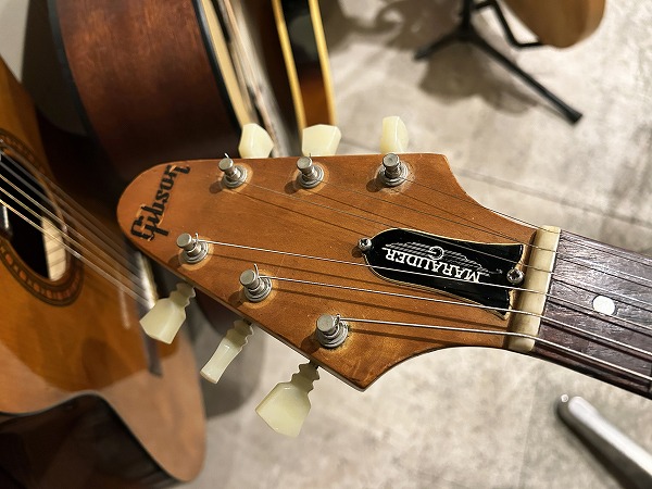 Gibsonの歴史の中でも特異な存在感を誇る、個性的かつ生産数の少ないレアモデル、Gibsom Marauder 1975年製の1本が入荷しました。現在ではマニア、熱狂的なファンに高い人気があり、プライスも上がりつつあるモデルですが、70s