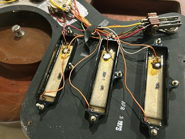 ピックアップはビル・ローレンスデザインのシングルをカバードで3基搭載しています。コントロールは1Vol、1Tone、1ロータリースイッチ、2Way