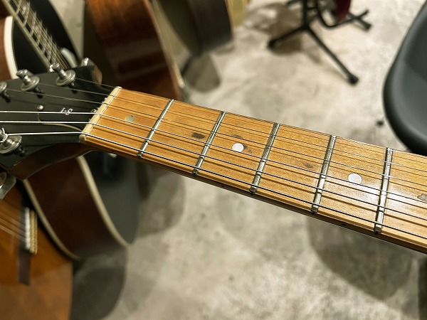 プレイコンディションは良好です。ネックは真っ直ぐに調整済で、ロッドもまだ若干の余裕があります。フレットは相応に減りは見られ5分程度の残りとなっており、山はかなり低くなっていますが、大きなへこみや弦溝はありません。ローアクションセッティングで出音も良好です。丁寧に磨きも入れ、光沢のある綺麗なコンディションになっています。指板も相応に使用感、若干の減りや黒ずみ、小傷は相応に見られますが、大きな減りやダメージは無く、指板も丁寧にクリーニング、コンディショニングを行なっており、綺麗な状態になっております。各種メンテナンス、セッティング済で、弦高ローアクションで出音良好なグッドプレイコンディションとなっています。現在弦高は12フレット上1弦1.5mm、6弦1.5mmで、弾きやすく出音良好です。電装系も出音、コントロール共に問題ありません。各種メンテナンス、セッティング済、プレイコンディションは良好です。