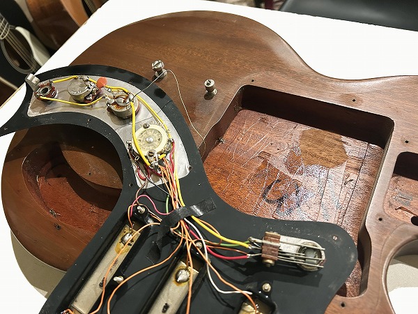 外観的にも相応に傷、使用感、経年感があり、打痕や擦り傷、若干の小さな塗装剥がれ等、全体的に相応にあるプレイヤーズコンディションです。ですが大きなひどいダメージは無く、ナチュラルレリックの雰囲気のあるルックスです。全体的に丁寧にクリーニング、磨きは入れており、綺麗なコンディションになっております。ケースはGibson製ギグバッグが付属します。