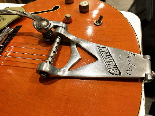 サウンドもリアル・ヴィンテージ・グレッチならではの極上トーン。スイートで粒立ちの良いトーンながらブリリアントで乾いたカランとしたトーン、サウンドホールなしのフルアコ構造のホロウボディのクローズドの箱鳴り感、乾ききった木材と塗装の抜けの良いサウンドと響きの良さ、本物のヴィンテージ・グレッチサウンドでしか味わえないサウンドの1本です。