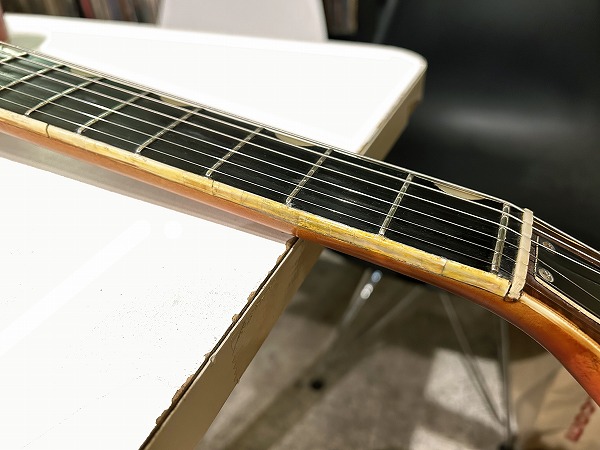 プレイコンディションは良好です。ネックは反りも無く真っ直ぐで良好な状態です。ロッドはまだ余裕があります。フレットは相応に減りあり山は低くなっていますが、大きなへこみや弦溝は無く、ローアクションセッティング可能で出音も良好です。フレットは丁寧に磨きも入れており、光沢も大分取り戻し綺麗なコンディションです。指板も相応に減りや傷、経年感が見られますが使用上問題となるようなダメージは無く、こちらも丁寧にクリーニングの上、コンディショニングも行っており綺麗なコンディションになっています。