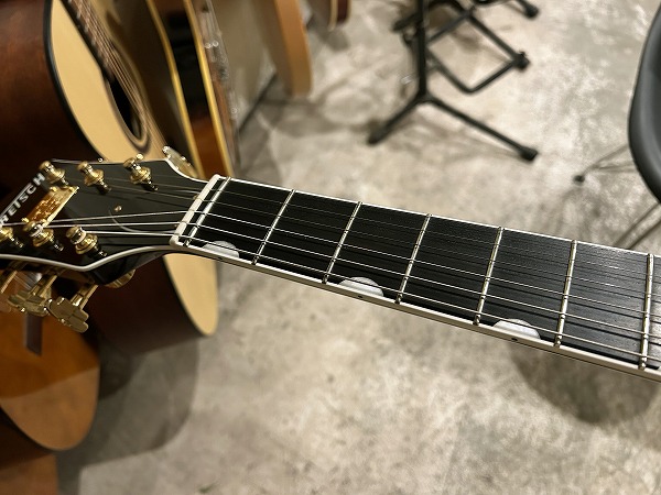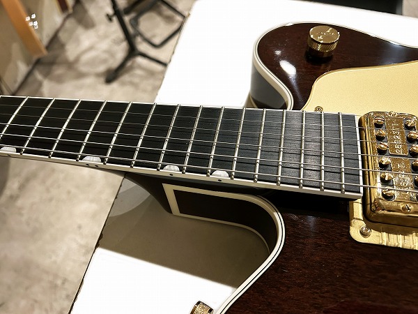 ピックアップにはフィルタートロンを2基搭載、クリアーで透明感ある艶やかなブリリアントさとヴィンテージライクなカランとしたドライさを持ちながら、ハムならではのスイートさも持ったサウンドで、本体のジャンボボディのメイプルフルアコサウンドとあいまって、ウォームな箱鳴り感ながらタイトなトーン、スイートながらブリリアントな透明感あるまろやかなトーンの、カントリージェントルマンならではの色気あるスイートブリリアントサウンドを生み出します。Beatlesサウンド、ロックンロール、ロカビリー、50s-60sサウンドには最高の1本です。