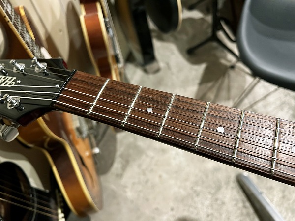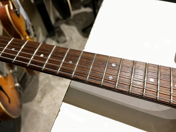 プレイコンディションは良好です。ネックは反りも無く真っ直ぐで良好な状態に調整済です。ロッドもまだ十分に余裕があります。フレットも若干の使用感、減りはあるものの、まだ7分程度は残っており、大きなへこみや弦溝もありません。弦高ローアクションセッティング済でビビリやつまりも無く、出音良好です。フレットは丁寧に磨きも入れており、光沢のある綺麗なコンディションです。指板も若干の使用感はありますが、大きな減りや大きなダメージは無く、指板も丁寧にクリーニングの上、コンディショニングも行っており綺麗なコンディションになっています。全体的にしっかりとメンテナンス、セットアップも施しております。現在弦高は12フレット上1弦1.5mm、6弦1.5mmです。電装系も出音、コントロール共に全く問題ありません。メンテナンス、セッティング済、プレイコンディション良好ですぐにそのままお使いいただけます。