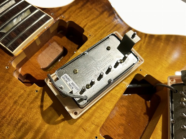 Duncan SH-1 '59 Modelを搭載。Seymour Duncanを代表するリプレイスメントモデルの1つで、ヴィンテージPAFを踏襲・再現したモデルです。ナチュラルかつスムースでクリアー、ほど良い出力感のグッドトーンが魅力です。