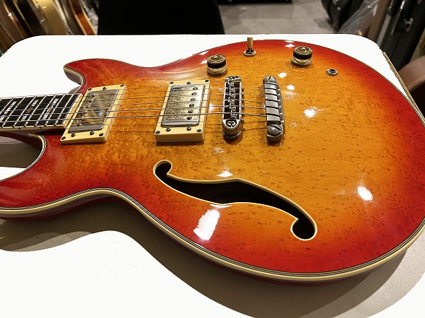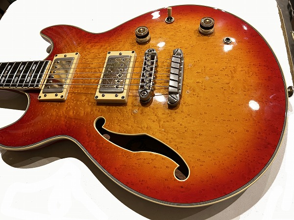 Ibanez 1988年製のAM400CS セミホロウモデル、バーズアイメイプル・アーチドトップ、チェリーサンバースト、ジャパン・ヴィンテージの1本が入荷しました。さすがは当時の日本製ジャパン・ヴィンテージモデルで、非常に良質な木材、素材、作りの、高い演奏性と素晴らしいサウンドを誇る1本です。海外市場では20万超えで取引される事もある人気ジャパン・ヴィンテージモデルの一つです。