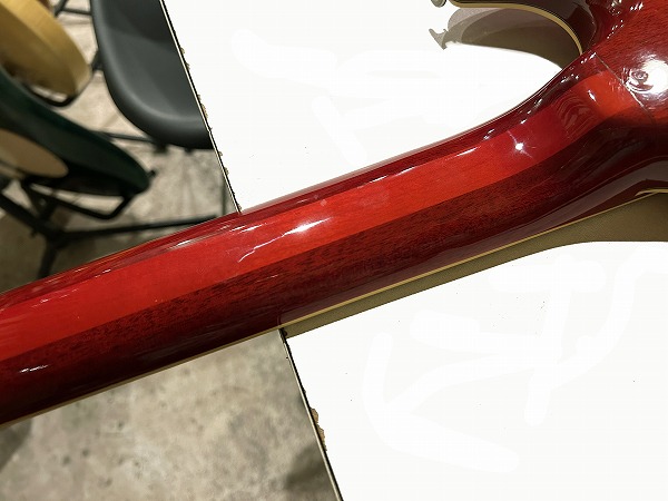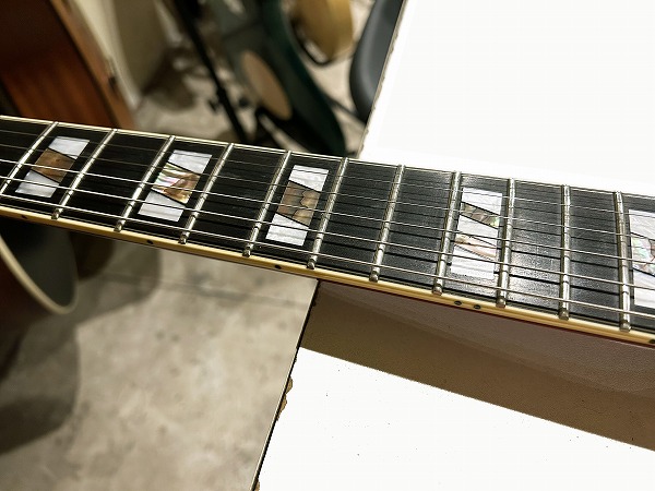 プレイコンディションは良好です。ネックは反りも無く真っ直ぐで良好な状態に調整済です。ロッドもまだ余裕があります。フレットは相応に減り、使用感が見られますがまだ7分程度は残っており、大きなへこみや弦溝もありません。丁寧に磨きも入れており、光沢も取り戻しています。弦高ローアクションセッティング済でビビリやつまりも無く、出音良好です。指板も相応に減り、小傷が見られますが、使用上問題となるようなダメージ、不具合は無く、指板も丁寧にクリーニングの上、コンディショニングも行っており綺麗なコンディションになっています。全体的にしっかりとメンテナンス、セットアップも施しております。現在弦高は12フレット上1弦2mm、6弦1.8mmです。電装系も出音、コントロール共に全く問題ありません。メンテナンス、セッティング済、プレイコンディション良好ですぐにそのままお使いいただけます。