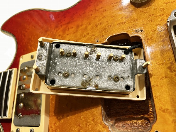 Super 58を搭載。初期の無印仕様で、ほど良い出力感とワイドレンジかつドライで枯れたトーンは、非常に本格的な質感のトーンです。コントロールは1Vol