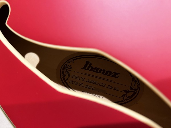小ぶりなオリジナルAMシェイプのフルアコ構造を持っているのが大きな特徴で、(ブリッジ下部のみアンカー固定用のウッドブロックあり)圧倒的な心地良い抱えやすさと弾きやすさ、フルアコならではの豊かなエアー感を両立したモデルです。ボディはリンデン(バスウッド系)トップ、リンデンサイド&バック、ネックは3Pナトー&メイプルのセットネック仕様、指板にはエボニーに似たルックスと音質特性を持つマッカーサー・エボニーを採用、コストを考慮しつつも音質特性に優れたものが採用されています。ピックアップにはIbanez