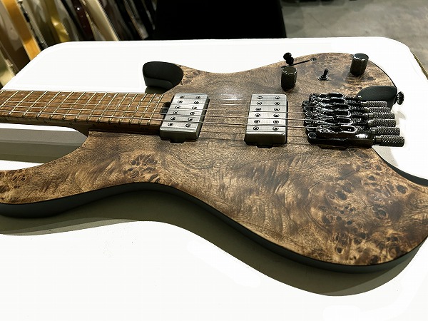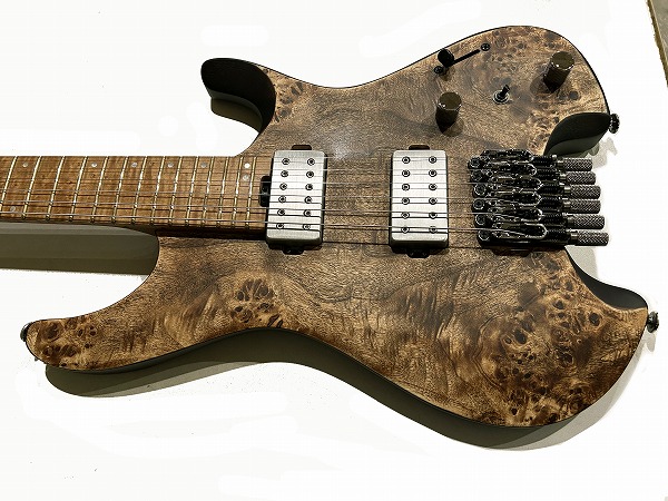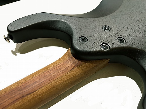 Jescar EVO ゴールドフレットとなっており、強度高く減りの心配が少ないのはもちろんですが、バランスの良い硬度のジャンボフレットで、安定したピッチ、音程感、音の立ち上がりと分離感の良さ、豊かなサステインを持ち、非常にクリアーで粒立ちの良いモダンサウンドです。24フレット仕様でハイフレットでのテクニカルなプレイにも対応します。そしてブリッジ、ヘッドは最大の特徴でもあるヘッドレス仕様で、オリジナル設計のIbanez