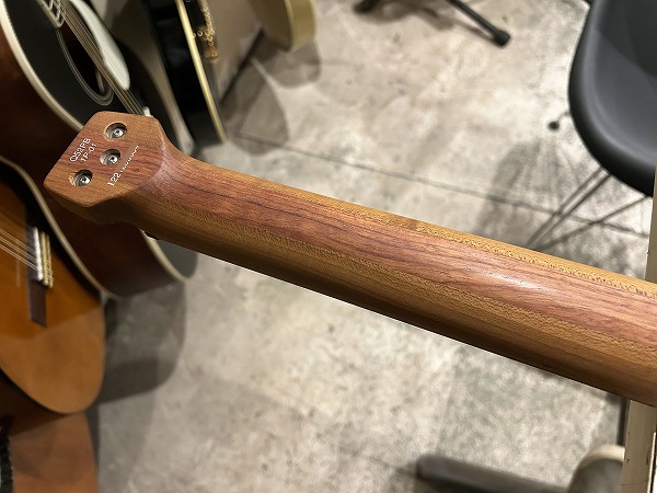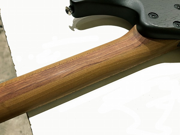 こういったモダンギターだと鳴らないような印象がある方もいらっしゃるかもしれませんが、生鳴りも良く、木材の質感もダイレクトです。サテンフィニッシュにする事で生鳴り良く、抜けも良く、またネックはしっかりとした握りのWizard