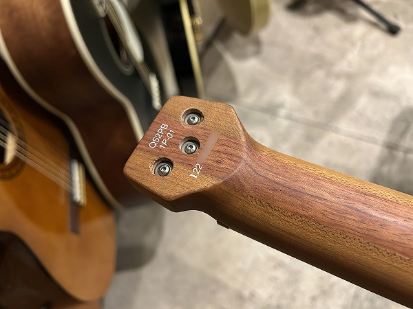 Mono-Tune bridge搭載、ヘッドはイモネジで固定式となっており、慣れない方には難しそうに思えるかもしれませんが、非常に簡単で操作性も抜群で、チューニングや弦交換も容易、ピッチやサステインの安定感も抜群のさすがは最新系モデルです。弦はボールエンドをブリッジ側に引っかけ、ヘッド側はイモネジで固定、後はブリッジエンドの棒部分のチューナーを回してチューニングするだけです。手元でチューニング出来ますので、プレイ中の微調整も容易です。重量2.21kg(デジタルはかり実測)と軽く、ボディバランスも良いです。