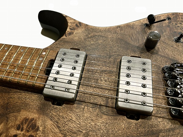 ピックアップにはオリジナルのQ58-7 パッシブ/セラミックPUを搭載、非常にクリアーで素直かつバランスの良いハムバッカーで、オールレンジにおいてバランス良く、濁らずクリアーなサウンド、かつまろやかで耳に痛くないトーン、ローノイズな上、出力感もパワフルで、本体のサウンド、質感、性能をナチュラルに引き出しつつ、素直なサウンドは様々なエフェクトやサウンドメイキングにも対応します。さらにミニスイッチ搭載で、シングルサウンドやパワータップなど各10パターン、計20パターンものピックアップのコンビネーションが可能で、多彩なサウンドが可能となっており、さらにそのどれもが非常に使えるサウンド。パワフルなハムから、ブリリアントなシングル、パワータップのファットでブリリアントなハイのサウンド、粒立ちの良いセンターサウンドや、ハーフトーンなど、様々なサウンドメイキングが可能です。