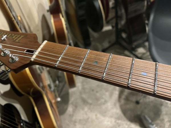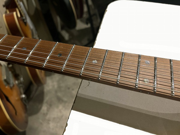 プレイコンディションは良好です。ネックは反りも無く真っ直ぐで良好な状態に調整済です。ロッドもまだ十分に余裕があります。フレットはステンレスですのでほとんど減りは無く10割がた残っています。へこみや弦溝も一切ありません。光沢もピカピカです。弦高ローアクションセッティング済でビビリやつまりも無く、出音良好です。指板も大きな使用感、減りや傷は無く、指板も丁寧にクリーニングの上、コンディショニングも行っており綺麗なコンディションになっています。全体的にしっかりとメンテナンス、セットアップも施しております。現在弦高は12フレット上1弦1.2mm、6弦1.5mmです。電装系も出音、コントロール共に全く問題ありません。メンテナンス、セッティング済、プレイコンディション良好ですぐにそのままお使いいただけます。