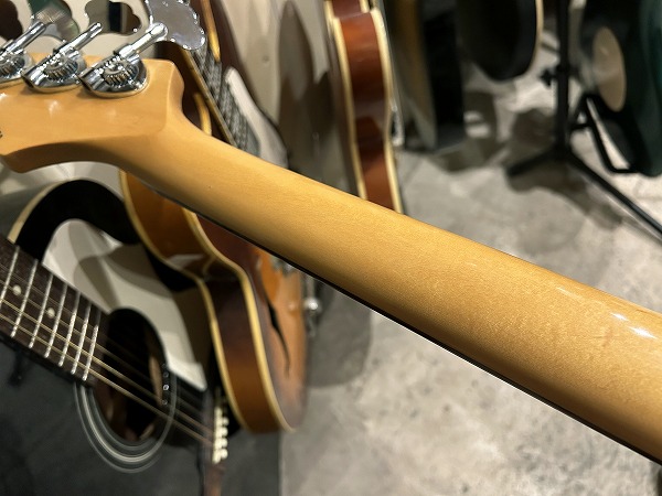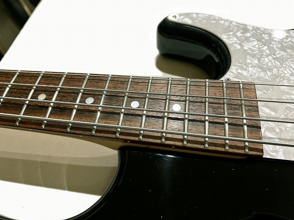 プレイコンディションは良好です。ネックは反りも無く真っ直ぐで良好な状態です。ロッドもまだ余裕があります。フレットも相応に使用感はありますが、まだ7分程度は残っており、大きなへこみや弦溝もありません。丁寧に磨きも入れており、光沢も取り戻しています。指板も若干の小傷、使用感はありますが、大きなダメージ、大きな減りは無く、こちらも丁寧にクリーニングの上、コンディショニングも行っており綺麗なコンディションになっています。しっかりとメンテナンス、セットアップも施しておりますので、弦高はローアクションで弾きやすく、ビビリやつまりも無く、良好な出音です。現在弦高は12フレット上1弦2mm、4弦2.5mmです。電装系も出音、コントロール共に全く問題ありません。メンテナンス、セッティング済、プレイコンディション良好ですぐにそのままお使いいただけます。
