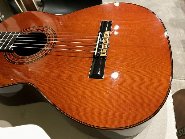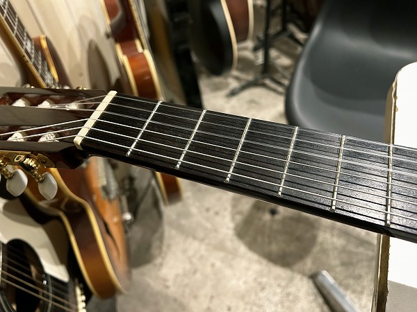 小平製で、リーズナブルなエントリーモデルながらしっかりとした作りです。音色の方もシダーならではの甘く柔らかで繊細なトーンとローズウッドの瑞々しくタイトなサウンドがあいまって、とても良いサウンドです。演奏性も高く、エントリークラスクラシックギターとしては弦高も低めに設定されており、ブリッジまだ高さ残っていますが、7フレットで1弦約2.5mm、6弦約3mm、9フレットで1弦約2.8mm、6弦約3.5mmと低めで弾きやすいです。初心者の方でも練習に取り組みやすい1本かと思います。
