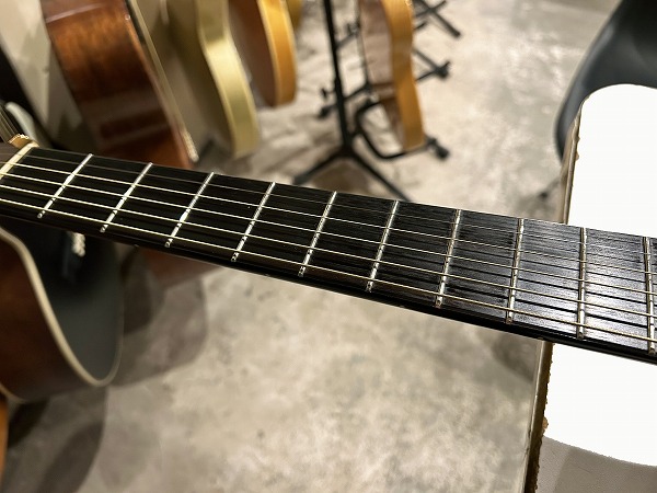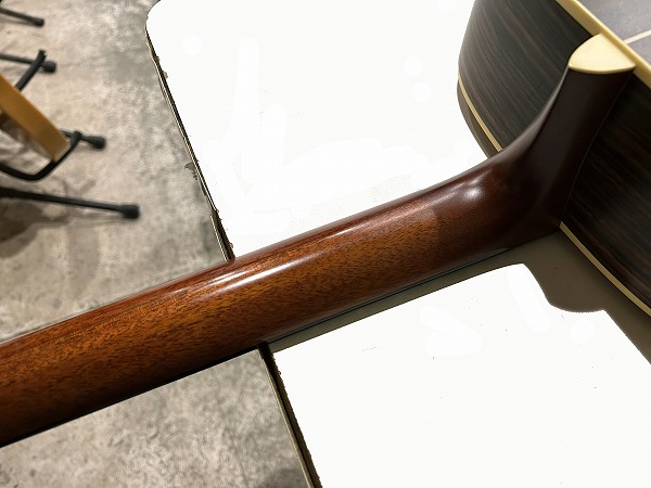 コンディションは非常に良好です。プレイコンディション良好で、演奏性、出音良好です。ネックは真っ直ぐで、トップのふくらみ、ブリッジ浮きやネック起きもありません。ロッドもまだ余裕があります。フレットも大きな減り無くまだ9分程度は残っており、丁寧に磨きも入れ、光沢もピカピカのコンディションです。指板も大きな減りやダメージは無く、こちらも丁寧にクリーニング・コンディショニングを行っており、綺麗な良好なコンディションになっています。ブリッジサドルの高さも十分に残っています。弦高は12フレット上1弦1.5mm、6弦2mmとローアクションで弾きやすく、出音も良好です。非常に良好のプレイコンディションです。