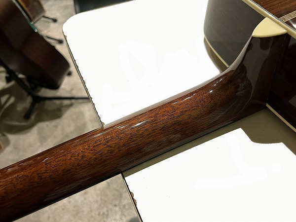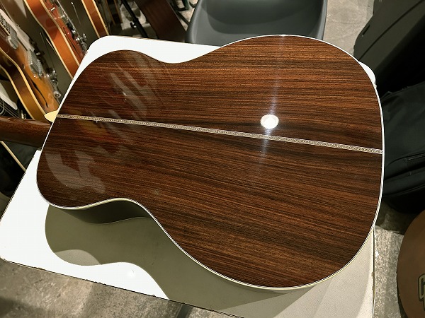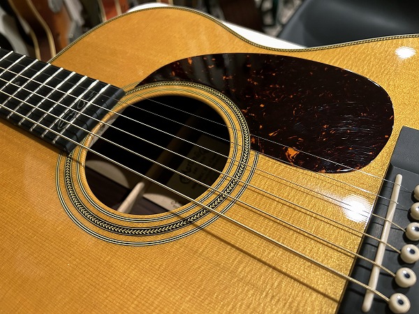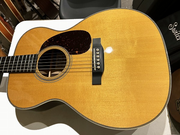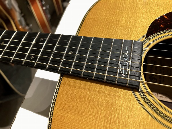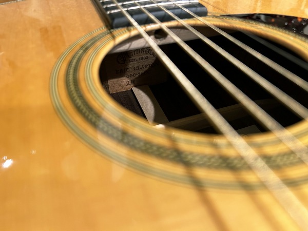 Eric Clapton シグネチャーモデルとして1996年に登場したモデル、000-28ECは、その完成度の高い仕様、素晴らしいサウンド、トーンで、世界中のギタリストを魅了し、シグネチャーモデルの域を超え、登場以来ロングセラーを続け、もはやレギュラーラインナップとして定番モデルの一つの感のある、多くのギタリストに愛され続けるモデルです。今回入荷したのはその000-28EC、2017年製の1本です。トップはシトカスプルース、サイド&バックはインディアン・ローズウッド、ネックはマホガニーで、ネックシェイプはやや太めのVシェイプになっているのが特徴的で、000スタイルながらファットで太く豊かな響き、鳴りの良さに貢献しています。指板とブリッジはエボニーです。ブレイシングはスキャロップドXブレイシングです。ロゼッタやバインディングのヘリンボーン、指板のダイアモンド・インレイ・ポジションマーク、ピックガードはべっ甲タイプ、ペグはニッケル・オープン・ギア、カラーはアンティークトナーなど、シンプルながら上質感とクラシカル感溢れる、落ち着いたヴィンテージライクな雰囲気も抜群です。
