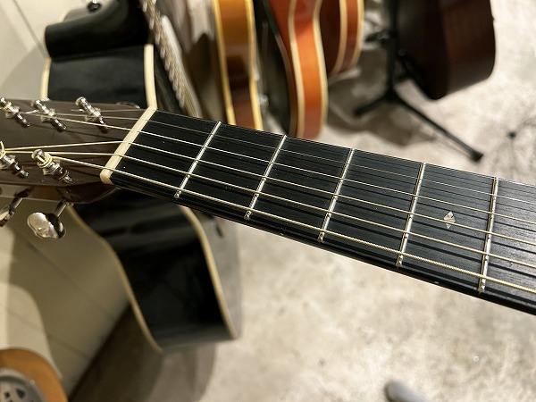 コンディションは非常に良好です。2017年製、前オーナー2017年11月新品購入の1本で、大事に使用・保管されていたものと思われ、大きな使用感の無いコンディションです。ネックは真っ直ぐで良好な状態で、トップのふくらみやネック起きもありません。フレットもほぼ9割〜10割がた残っており、へこみや弦溝も無く、光沢もまだピカピカです。指板も大きな使用感無く、減りや目立った傷もありません。指板もさらに丁寧にクリーニング・コンディショニングを行っており、綺麗なコンディションになっています。ブリッジの高さも十分に残っています。現在弦高は12フレット上1弦約2mm、6弦約2.5mmでとても弾きやすく出音も良好です。