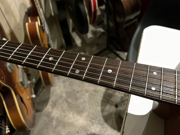 プレイコンディションは非常に良好です。ネックは反りも無く真っ直ぐで良好な状態です。フレットも大きな減りは無く8分程度は残っており、丁寧に磨きも入れ、光沢のある綺麗なコンディションになっています。指板も大きな減りや傷も無く、非常に良好なコンディションです。指板も丁寧にクリーニング、コンディショニングしておりますので綺麗で良好な状態になっております。ネック起きやトップのふくらみ、ブリッジ浮きなどもありません。全体的にしっかりとメンテナンス、セットアップを施しておりますので、弾きやすく、ビビリやつまりも無く、良好な出音になっています。現在弦高は12フレット上1弦約2.2mm、6弦約2.8mmとローアクションで弾き心地、弾きやすさも抜群で出音も非常に良好です。ペグ動作も問題無く、良好なコンディションです。プレイコンディションは良好で、調整、セットアップ済のグッドプレイコンディションです。