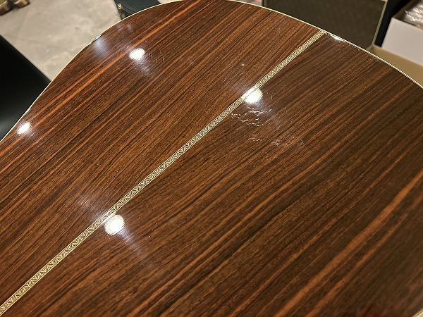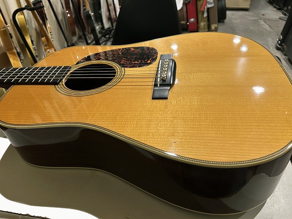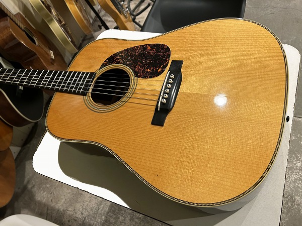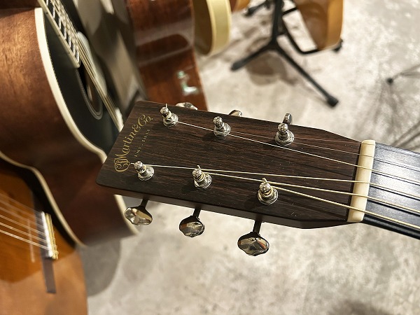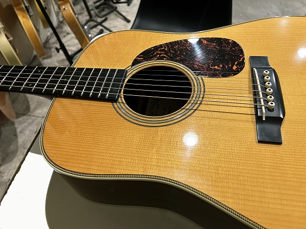 その素晴らしい仕様、材、作りに裏打ちされたサウンドは極上です。ファン、マニアには言わずもがなではございますが、アディロンダック・スプルースは戦前ヴィンテージ・マーチンに使用された事で有名で、現在は入手困難な為、こういった高級ハイグレード・ヴィンテージ・リイシューモデル等に主に使用されています。その魅力はやはり押し出し感と音量感のあるダイナミックでパワフルなサウンド、粘り感もありながらクリアーでアコースティカルなトーン、倍音も豊かなサウンドで、フォワード・シフテッド・スキャロップド・ブレイシング、ローズウッド・サイド&バックの瑞々しくクリアーなトーン、エボニー指板のタイトで透明感のある粒立ちの良いトーンと相まって、太く豊かで迫力のあるサウンドと、かつこもらず引き締まったサウンド、上質な極上のアコースティカルトーンの、オリジナルの戦前Martin