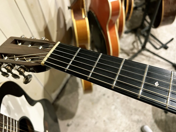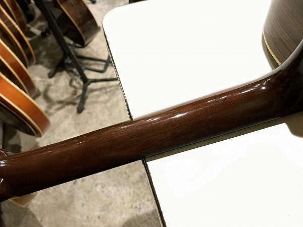 コンディションも良好です。ネックは真っ直ぐで良好な状態で、トップのふくらみやネック起きもありません。前オーナー様が以前専門ショップに依頼し、フレットすり合わせとナット交換済です。大きな減りやへこみ、弦溝も無く、丁寧に磨きも入れ光沢のある綺麗なコンディションになっています。指板も軽度の小傷、使用感はありますが大きな減りやダメージは無く、指板も丁寧にクリーニング・コンディショニングを行っており、綺麗なコンディションになっています。現在弦高は12フレット上1弦約2mm、6弦約2.2mmでとても弾きやすく出音も良好です。