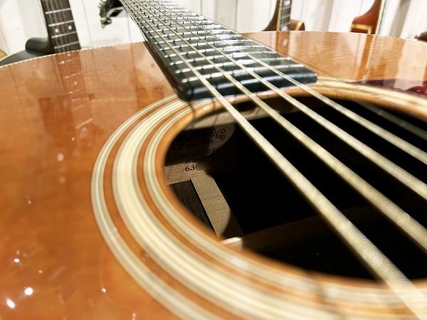 今回入荷したのは1998年製の1本。サウンドホール内刻印シリアルナンバーは「63****」、モデル、シリーズ、型番刻印は「VINTAGE SERIES