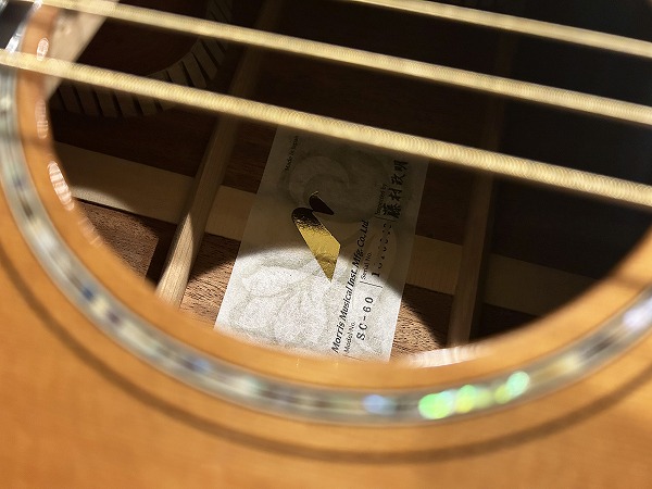 国産老舗モーリスによるフィンガーピッキング専用シリーズとも言えるSシリーズの、2018年製 20本限定モデル SC-20 です。製作、組み込み、調整まですべて国内で行なわれたモデルで、サウンドホールラベルには「Inspected