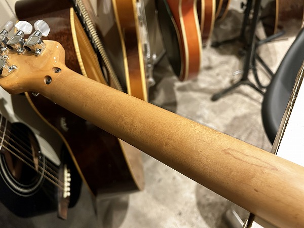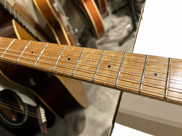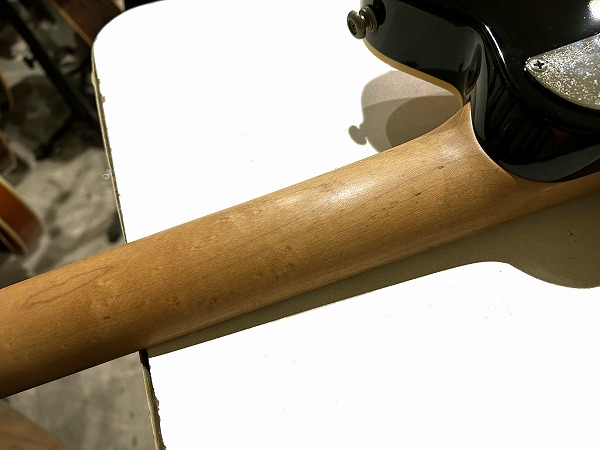 プレイコンディションは良好です。ネックは反りも無く真っ直ぐで良好な状態です。フレットは相応に減りが見られますが、まだ7分程度は残っており、大きなへこみや弦溝も無く、ローアクションセッティング可能で出音も良好です。丁寧に磨きも入れており、光沢のある綺麗なコンディションになっています。指板も相応に若干小傷、使用感はありますが、大きな減りやダメージは無く、こちらも丁寧にクリーニングの上、コンディショニングも行っており綺麗なコンディションになっています。