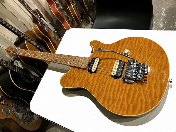 ファン・マニアに非常に評価・人気の高い、日本製MUSICMAN AXIS-EXが入荷しました。本家MUSICMN USA EVH / AXISと同じ材・パーツを使用し、組み込み・塗装・仕上げが日本で行われたモデルで、本家USA製の廉価版としての位置づけで販売されたモデルですが、その作り・仕上がりの丁寧さ、クオリティの高さから、本家USA製同等かそれ以上の高い評価をするファン・マニアの方も多い事で知られており、市場価格も高値をキープする人気モデルです。今回入荷したのはその日本製AXIS-EXの1996年製