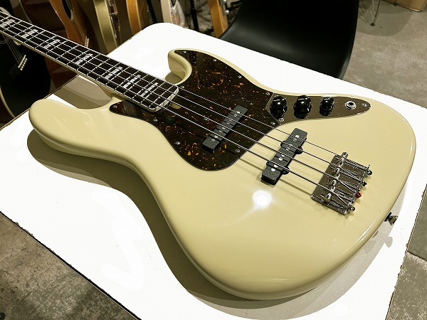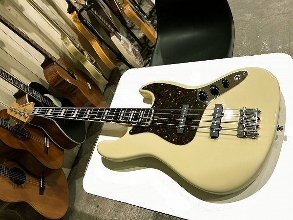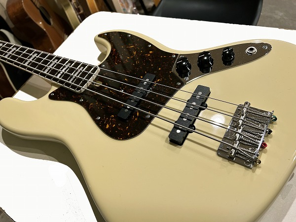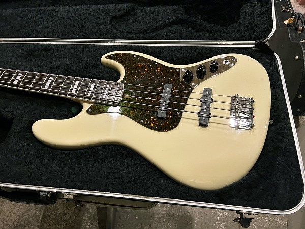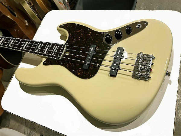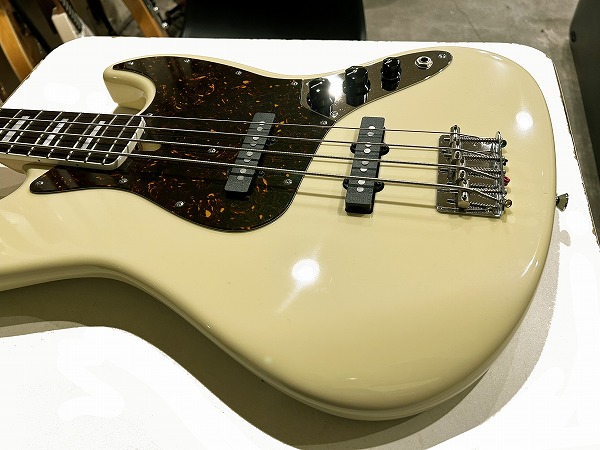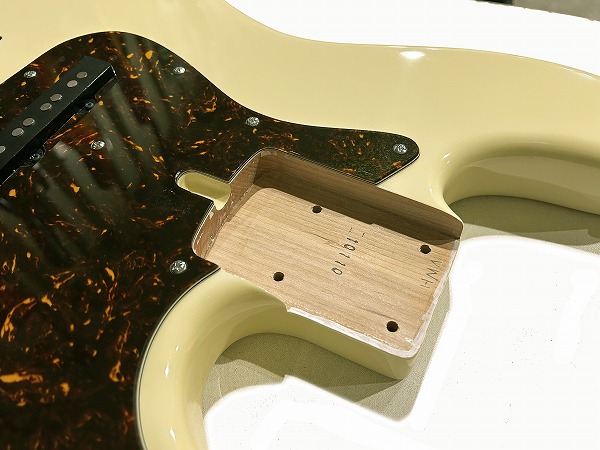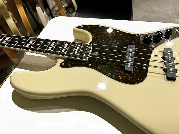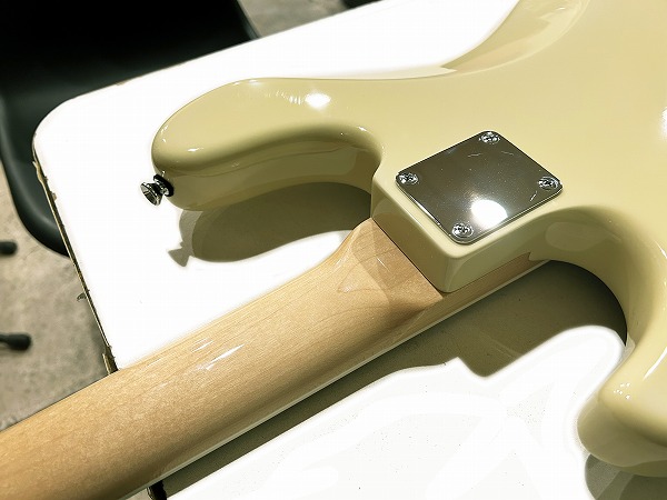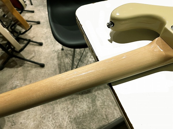 ボディはアルダー、ネックはメイプル+ローズウッド指板に、ネックバインディング付き、ポジションマークはブロックインレイ、ヴィンテージホワイトカラーにべっ甲柄ピックガードといった、70s