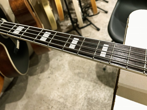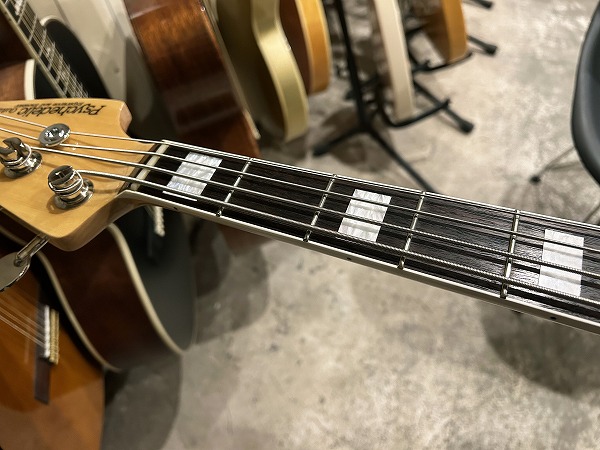 プレイコンディションは非常に良好です。ネックは大きな反りも無く真っ直ぐで良好な状態に調整済です。ロッドもまだ余裕があります。フレットも大きな減りは無く、9分程度は残っており、大きなへこみや弦溝も無く、丁寧に磨きも入れており、綺麗なコンディションになっています。指板も大きな使用感無く、減りや目立った傷も無く、とても綺麗なコンディションです。こちらも丁寧にクリーニングの上、コンディショニングも行っております。しっかりとメンテナンス、セットアップも施しておりますので、弦高はローアクションで弾きやすく、大きなビビリやつまりも無く、良好な出音です。現在弦高は12フレット上1弦1.5mm、4弦2mmです。電装系も出音、コントロール共に問題ありません。プレイコンディションは良好で問題ありません。メンテナンス、セッティング済、良好プレイコンディションですぐにそのままお使いいただけます。