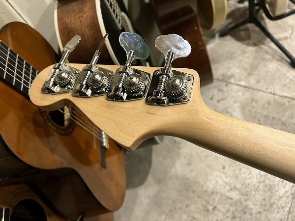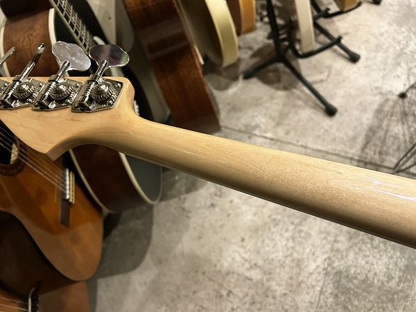 JBライクなゴージャスな仕様も魅力です。ナット幅約37mm、Cシェイプの非常に細身なネックは非常に弾きやすいです。ピックアップはオリジナルのJBタイプ