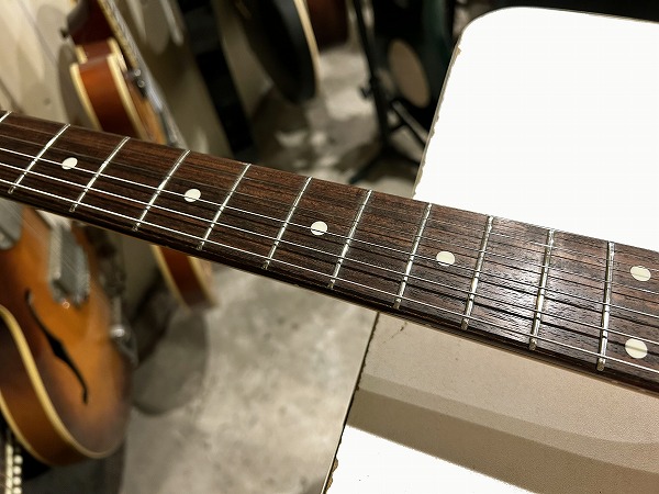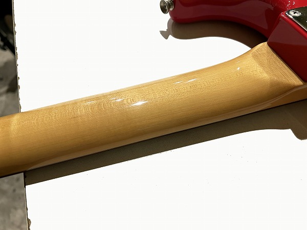プレイコンディションは良好です。ネックは反りも無く真っ直ぐで良好な状態に調整済です。ロッドもまだ若干の余裕があります。フレットも相応に使用感はあるもののまだ7分程度は残っており、大きなへこみや弦溝もありません。弦高ローアクションセッティング済でビビリやつまりも無く、出音良好です。フレットは丁寧に磨きも入れており、光沢のある綺麗なコンディションです。指板も若干の使用感、小傷はありますが、大きな減りや大きなダメージも無く、指板も丁寧にクリーニングの上、コンディショニングも行っており綺麗なコンディションになっています。全体的にしっかりとメンテナンス、セットアップも施しております。現在弦高は12フレット上1弦1.5mm、6弦1.5mmです。電装系も出音、コントロール共に全く問題ありません。メンテナンス、セッティング済、プレイコンディション良好ですぐにそのままお使いいただけます。