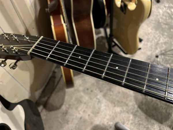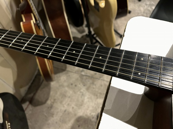 プレイコンディションは非常に良好です。ネックは反りも無く真っ直ぐで良好な状態です。フレットはステンレスフレットですので、ほぼ減り無く10割がた残っており、丁寧に磨きも入れ、光沢のあるピカピカの綺麗なコンディションになっています。指板も大きな減りや傷も無く、良好なコンディションです。指板も丁寧にクリーニング、コンディショニングしておりますので綺麗で良好な状態になっております。ネック起きやトップのふくらみ、ブリッジ浮きなどもありません。全体的にしっかりとメンテナンス、セットアップを施しておりますので、弦高はローアクションで弾きやすく、ビビリやつまりも無く、良好な出音になっています。現在弦高は12フレット上1弦約1.5mm、6弦約1.8mmです。ペグ動作も問題無く、良好なコンディションです。プレイコンディションは非常に良好で、調整、セットアップ済のグッドプレイコンディションです。