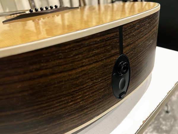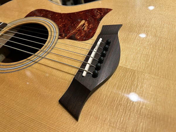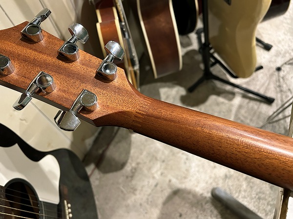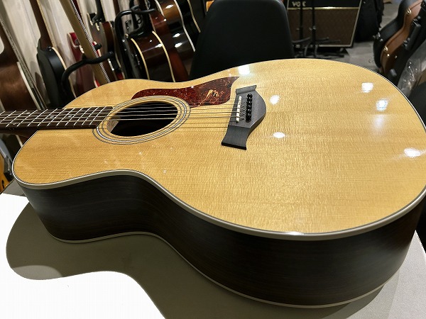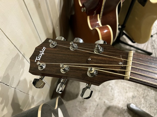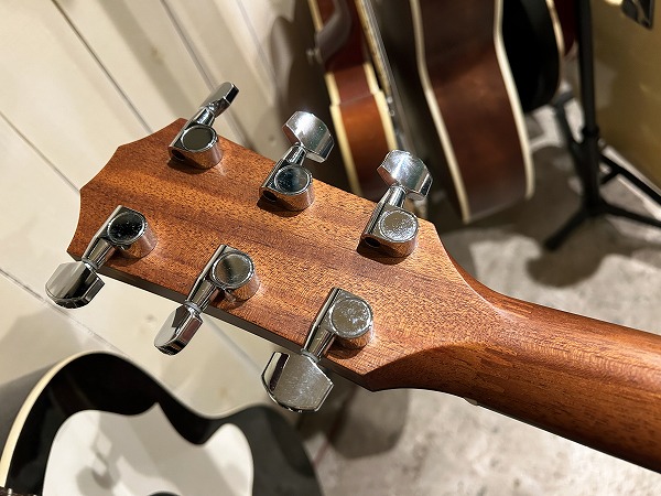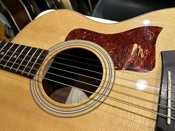 豊かな生鳴り感とブリリアントでカラッと乾いたハイトーン、クリアーですっきりとした透明感のあるサウンドが特徴的で、アメリカンなアコースティックサウンドを感じさせる、エントリークラスながらさすがはTaylorの雰囲気ある1本です。